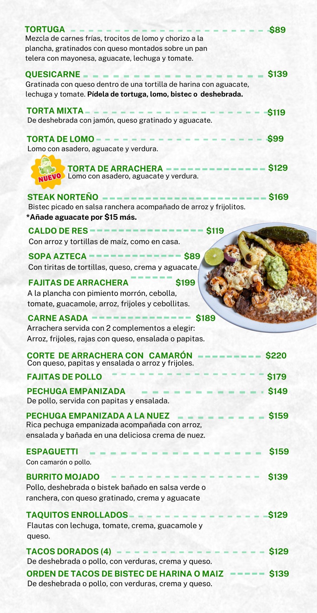 Restaurante Mexicano, con un gran sazón y con una gran variedad de comida mexicana, podrás encontrar: